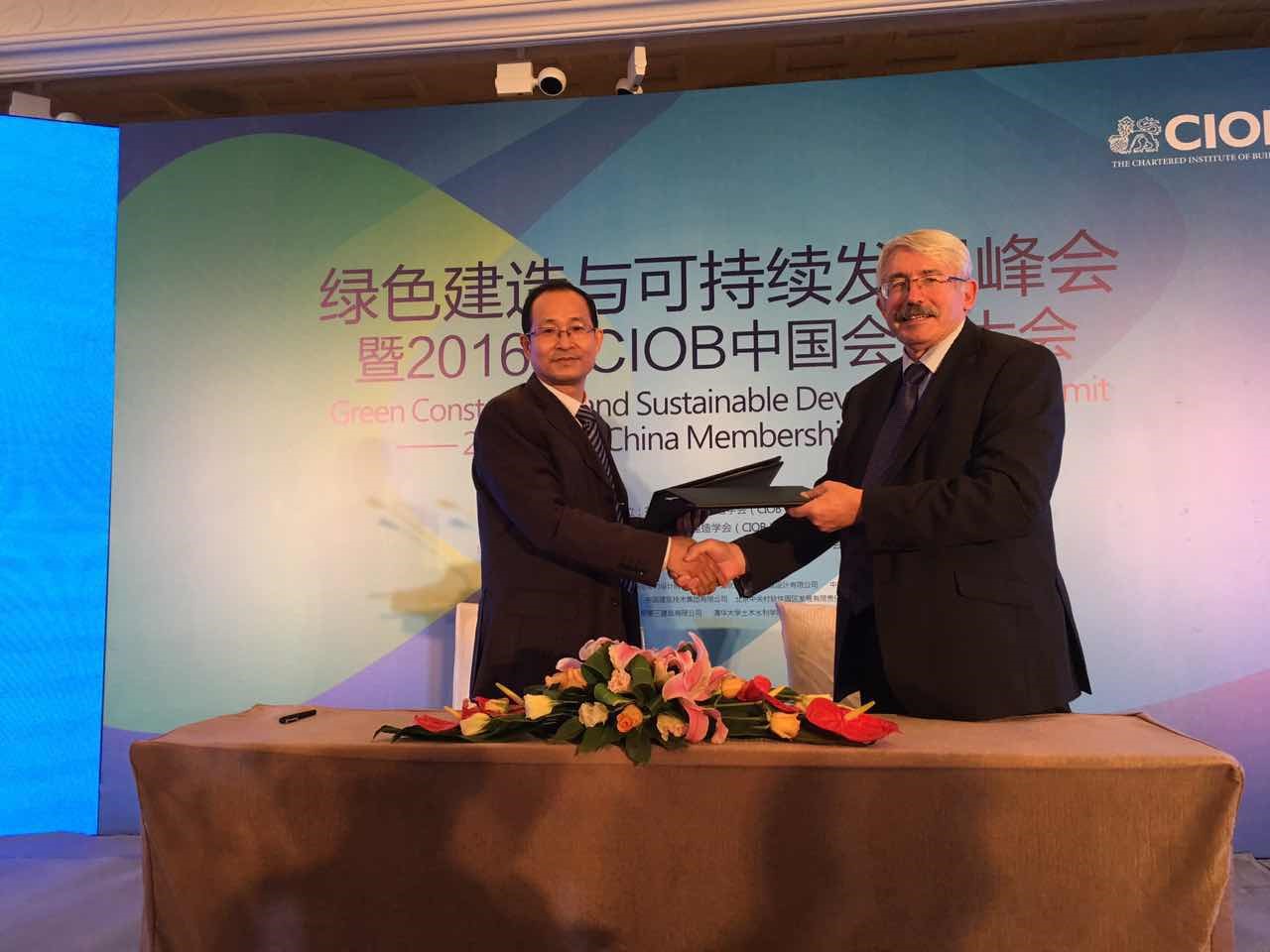 2016年5月21日,“绿色建造与可持续发展峰会”曁2016年英国皇家特许建造学会(CIOB)中国会员大会在北京中国大饭店举行。此次年会的重要议题之一是新增加两家战略合作伙伴,北京大学国际工程学院作为新增战略合作伙伴之一,院长张水波参会并出席签约仪式。此次签约标志着北京市政工程管理学院成为CIOB全球战略合作伙伴,学院今后会为客户和学员提供更加高品质和国际化的课程产品和外延服务。